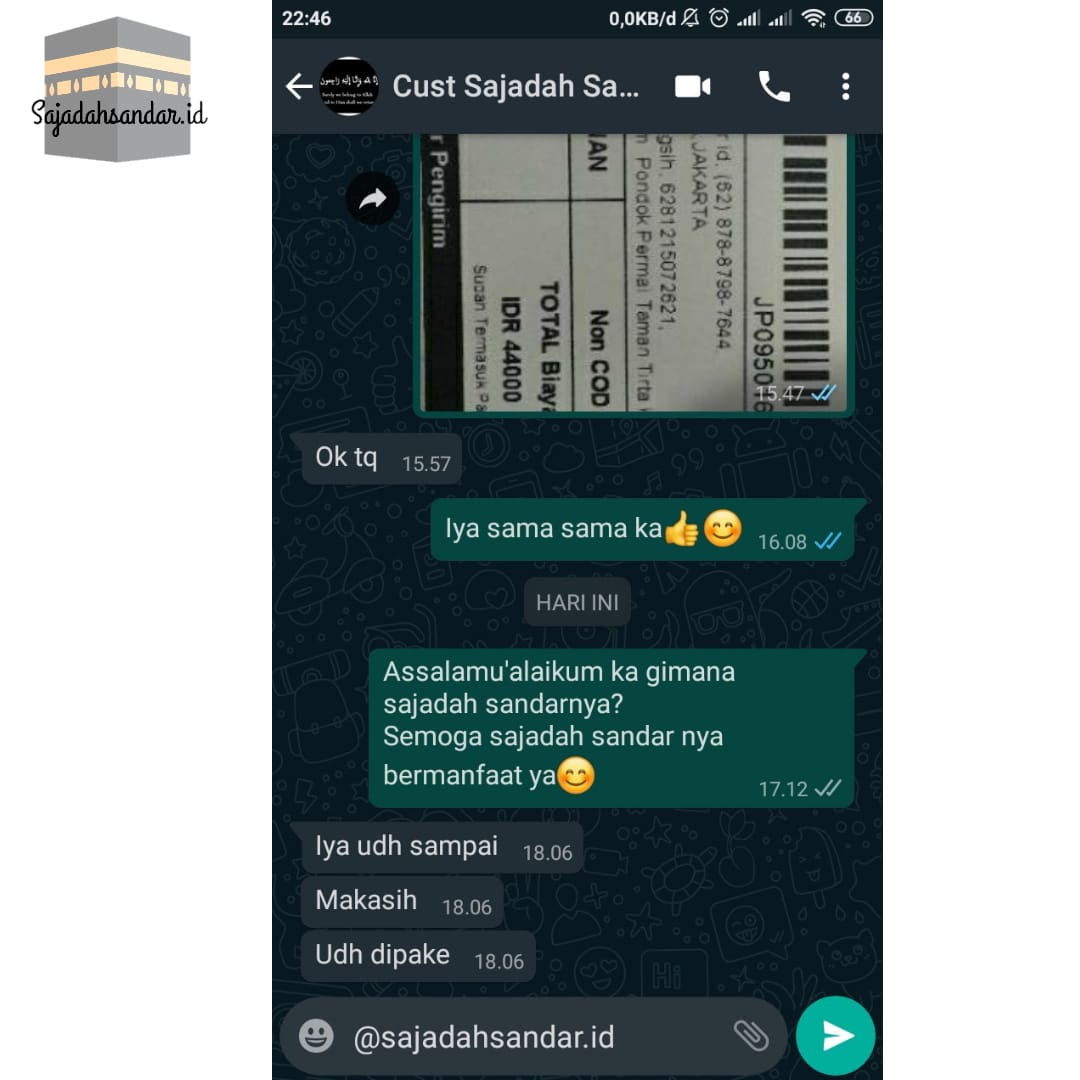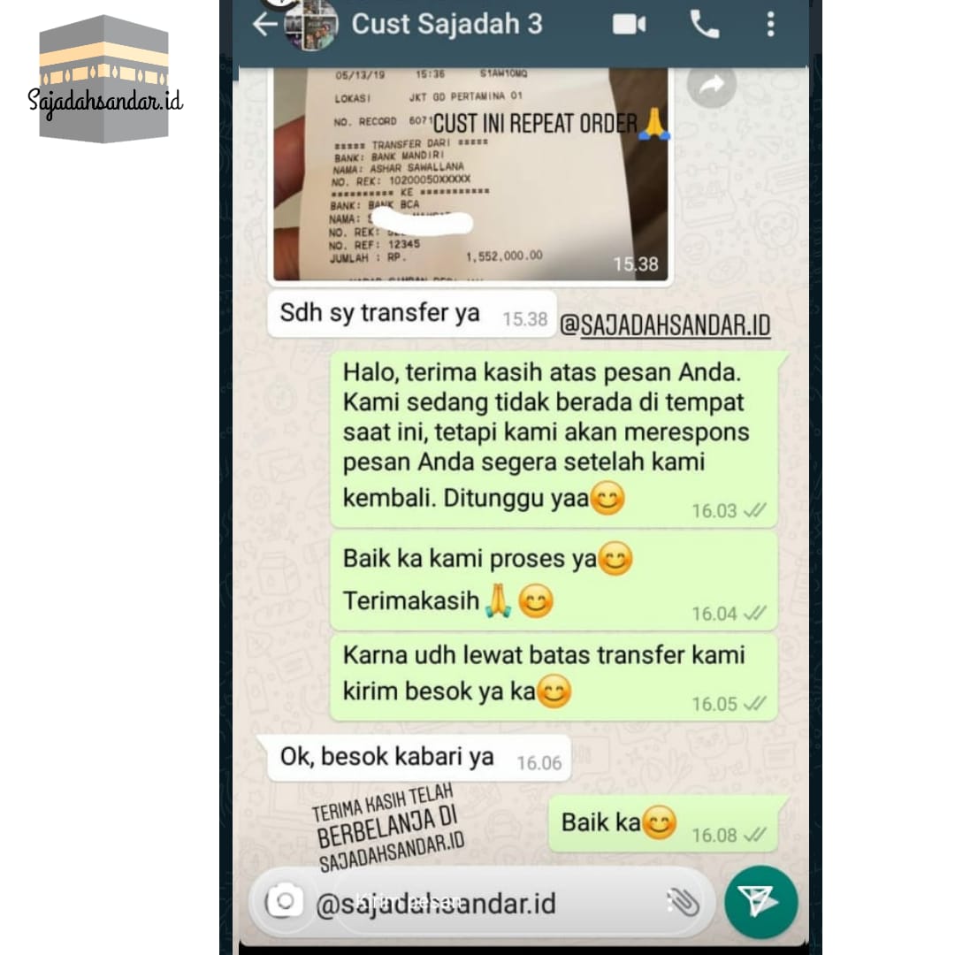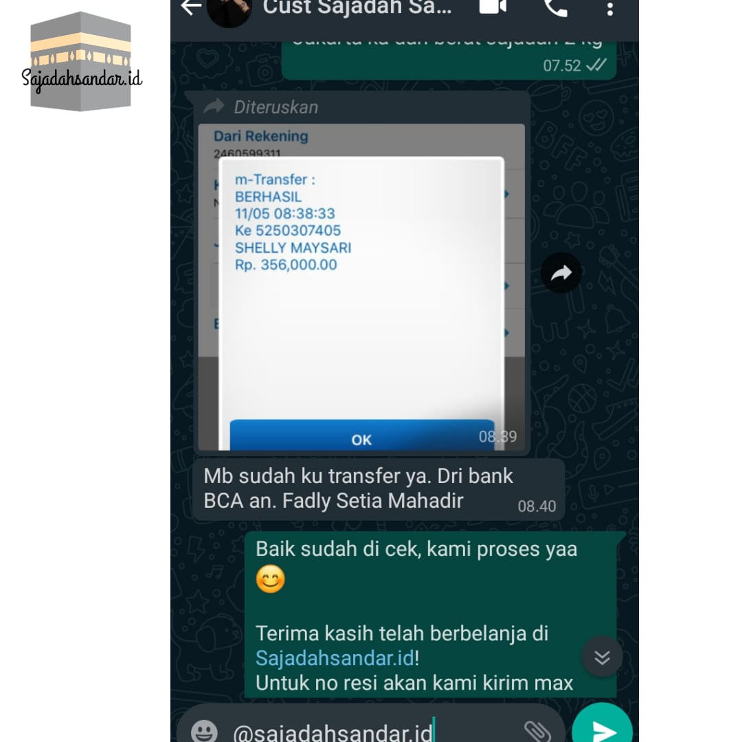 Sejak 2017, Sajadahsandar.id telah menjual lebih dari 1000pcs sajadah ke seluruh Indonesia, Suatu kepuasan untuk kami jika dapat memberikan pelayanan terbaik untuk pelanggan kami. silakan hubungi kami di +62878 8798 7644 or email us at cs@sajadahsandar.id